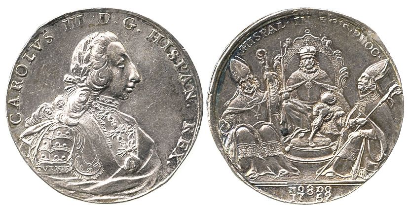 Seville, Spain, silver proclamation medal, Charles III, 1759.