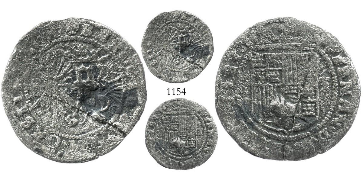 Seville, Spain (special issue for the New World), 1 real, Ferdinand-Isabel, with P countermark (for Panama[?]), extremely rare. CT-unlisted. 3.0 grams. In 1505 a special series of coins for exclusive use in the New World was struck in Spain under Ferdinand-Isabel and subsequently exported to Santo Domingo, Mexico, Panama and even Puerto Rico. These coins, which are generally very rare today, show a large, crowned F in the center of the reverse. This specimen also shows a bold P countermark to the immediate right of the crowned F, which we believe indicates its use in the Panama region, where most of the known coins with this countermark have been found (note this coin and the previous lot are the first of this combination ever to be offered at auction). The host coin shows a full shield flanked by ermines on obverse and full yoke and arrows in addition to the F and mintmark S below it on the reverse, with much legend as well, Fine details but lightly corroded and fragile from a hairline fracture below the countermark, which is darkly toned compared to the rest of the coin.