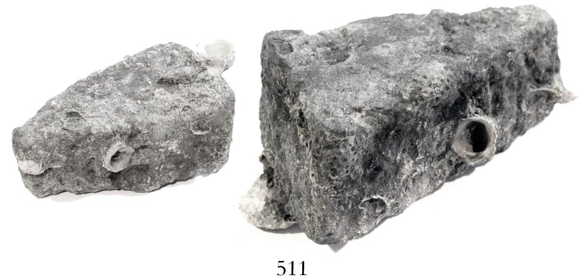 Silver "wedge" ingot, 768 grams, encrusted (uncleaned). Approx. 5" x 3" x 2". Looking for all the world like a gray slice of moldy cheesecake, this uncleaned ingot is composed of silver amalgam, much less dense than solid silver, its wedge shape possibly due to a mold used at that stage of the refining process and not necessarily for arraying in an 8-piece circle of contraband in the false bottom of a barrel as popularly believed, this specimen with several shells embedded in the thick encrustation. From the San Jose (1733 Fleet), with photo-certificate #S-10.12-84.2 from the salvager, whose find is mentioned in his book Following the Lure of the Galleon Treasures, a signed and numbered copy of which accompanies this lot, as well as a small wooden display chest.