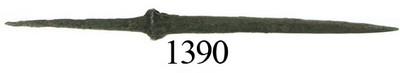 Single "lance"-type steel needle. 8.7 grams, 6¼" long. This long and remarkably intact needle with sharp points at both ends has a thick, square "waist" near the middle, giving it the appearance of a jouster's lance, its actual use probably having to do with surgery or sailmaking. Recovered from: Spanish 1715 Fleet, east coast of Florida. With Real Eight Co. certificate.