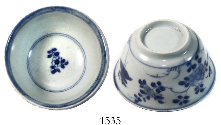 Small, blue-on-white Chinese porcelain teacup, K'angxi period, ex-Ullian.