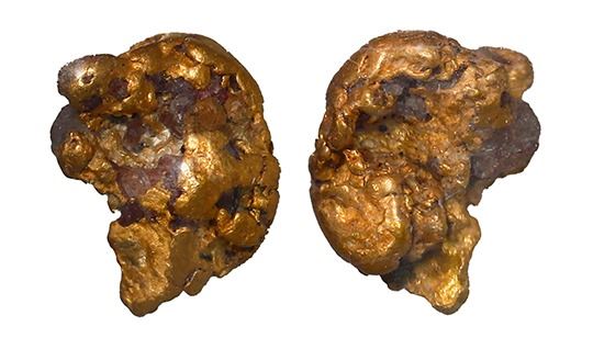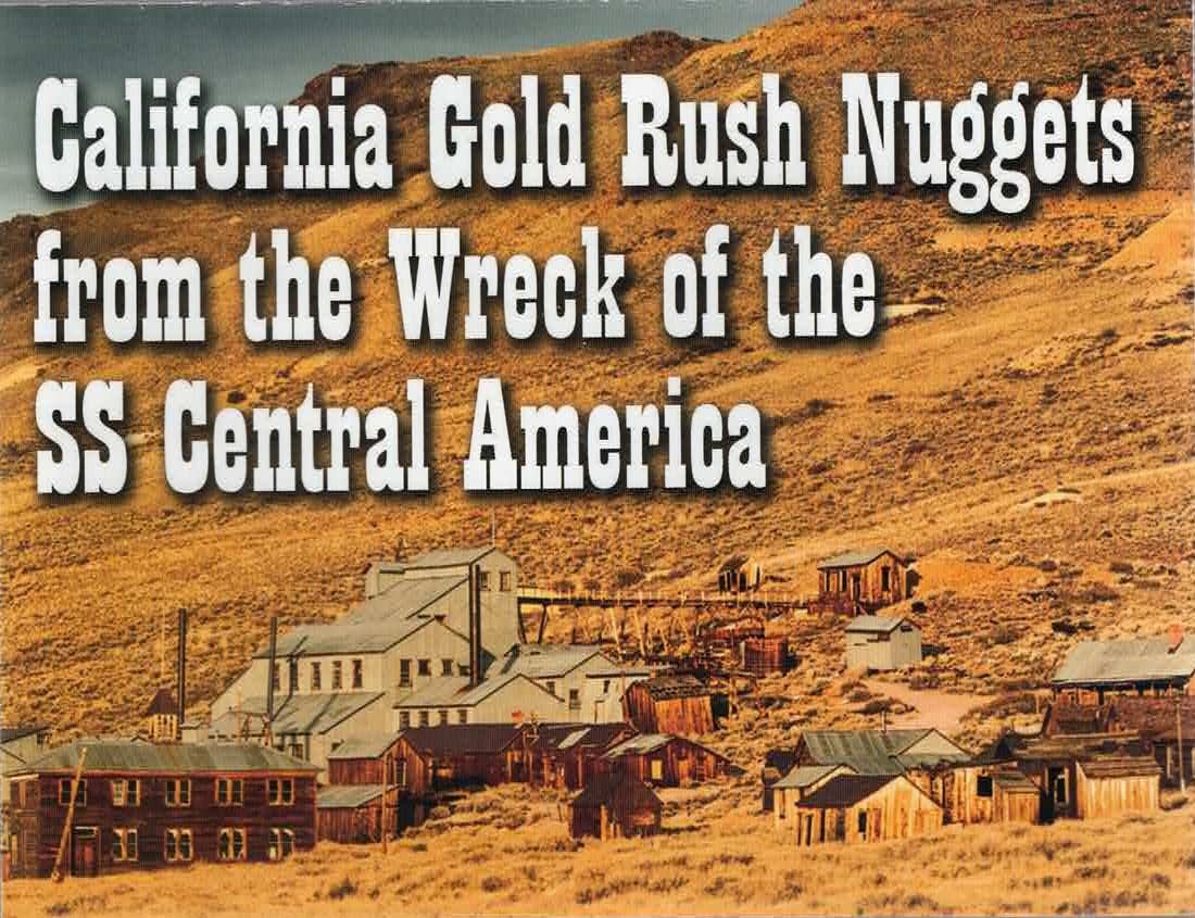 Small gold nugget, 0.53 gram, NGC / SS Central America (California Gold Rush Nugget Label). Up to 7mm. Irregular natural "picker" nugget with pieces of gray quartz remaining. From the S.S. Central America (1857), with promotional flyer.