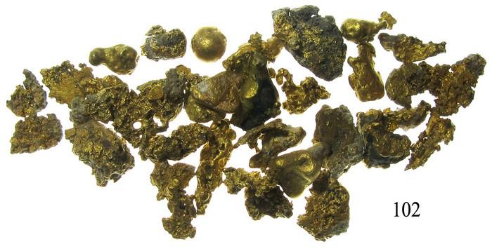 Small lot of natural gold nuggets and flakes, from the Espadarte (1558). 17.3 grams. Lot of over 36 small pieces (none larger than 1.3 grams and about ½") that appear to be mostly natural nuggets with a few cuttings or drippings from refining work, some with sediment, great lot for subdividing and promotion. From the Espadarte (1558), with Arqueonautas certificate #IDM-006/02/1011.