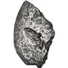Small silver "plata corriente" cut from a "splash" ingot, 53.66 grams, with partial tax stamp visible, XRF tested at 86-90% silver. approx. 2" x 1-1/4" x 1/4". A desirable piece showing a clear circular tax stamp with ISPAN visible, very tidily broken from the edge of a thin "splash," with much of the original curved edge intact, the breaks filled with light tan sediment, toned in the tax stamp for nice contrast, also important as exactly the weight of two 8 reales.