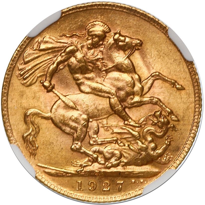 South Africa (under Great Britain), gold sovereign, George V, 1927, NGC MS 63.