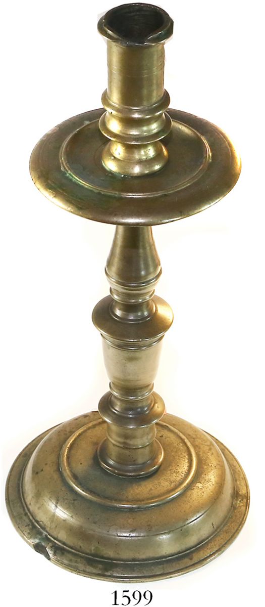 Spanish colonial-period brass candlestick holder, 1600s-1700s.