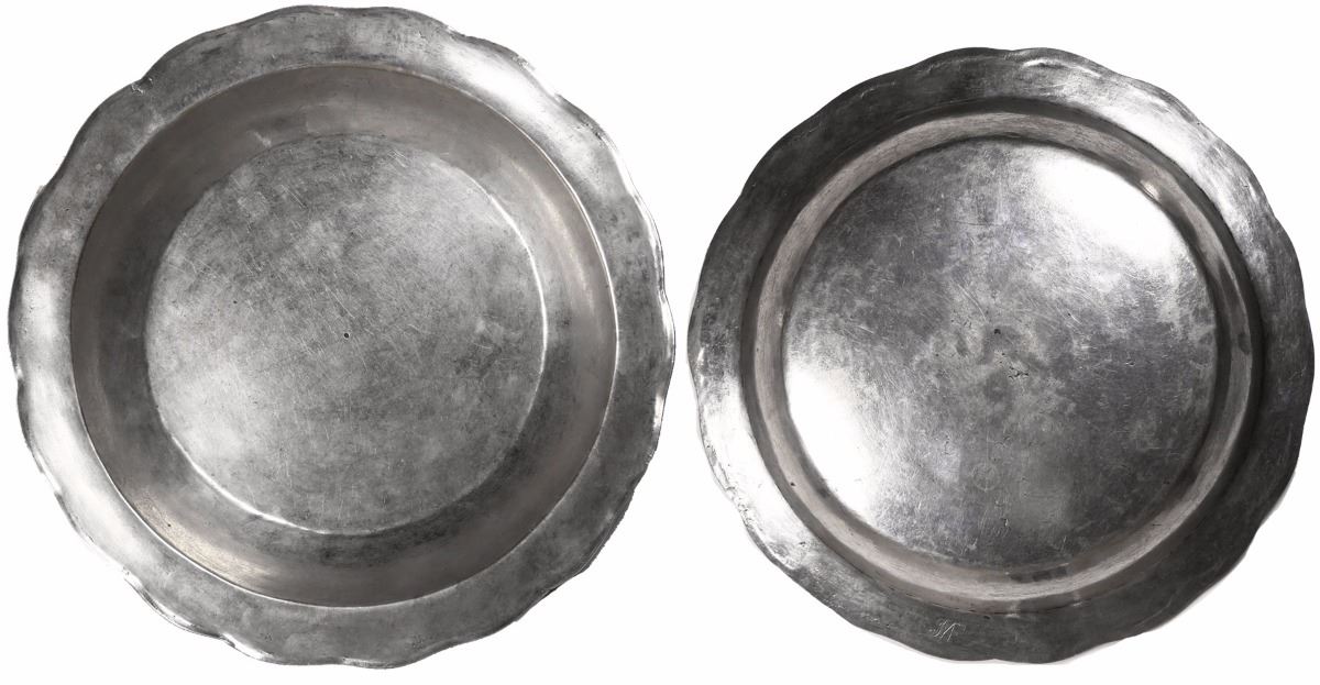 Spanish colonial silver bowl, 1700s, with script-MF monogram on bottom of rim.