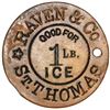 St. Thomas, Danish West Indies, round uniface brass 1 lb ice token, Raven & Co. (ca. 1915-30), rare.