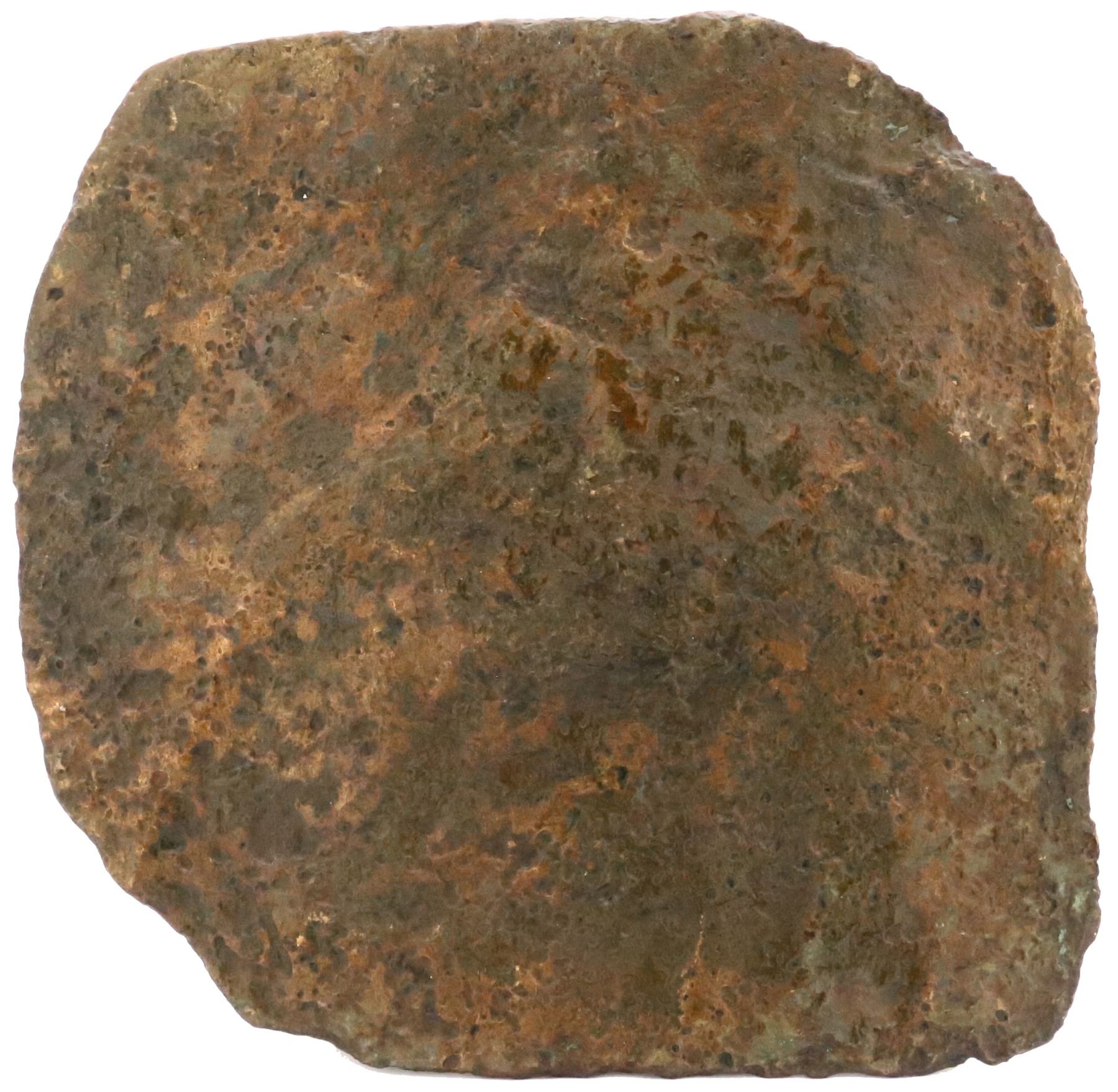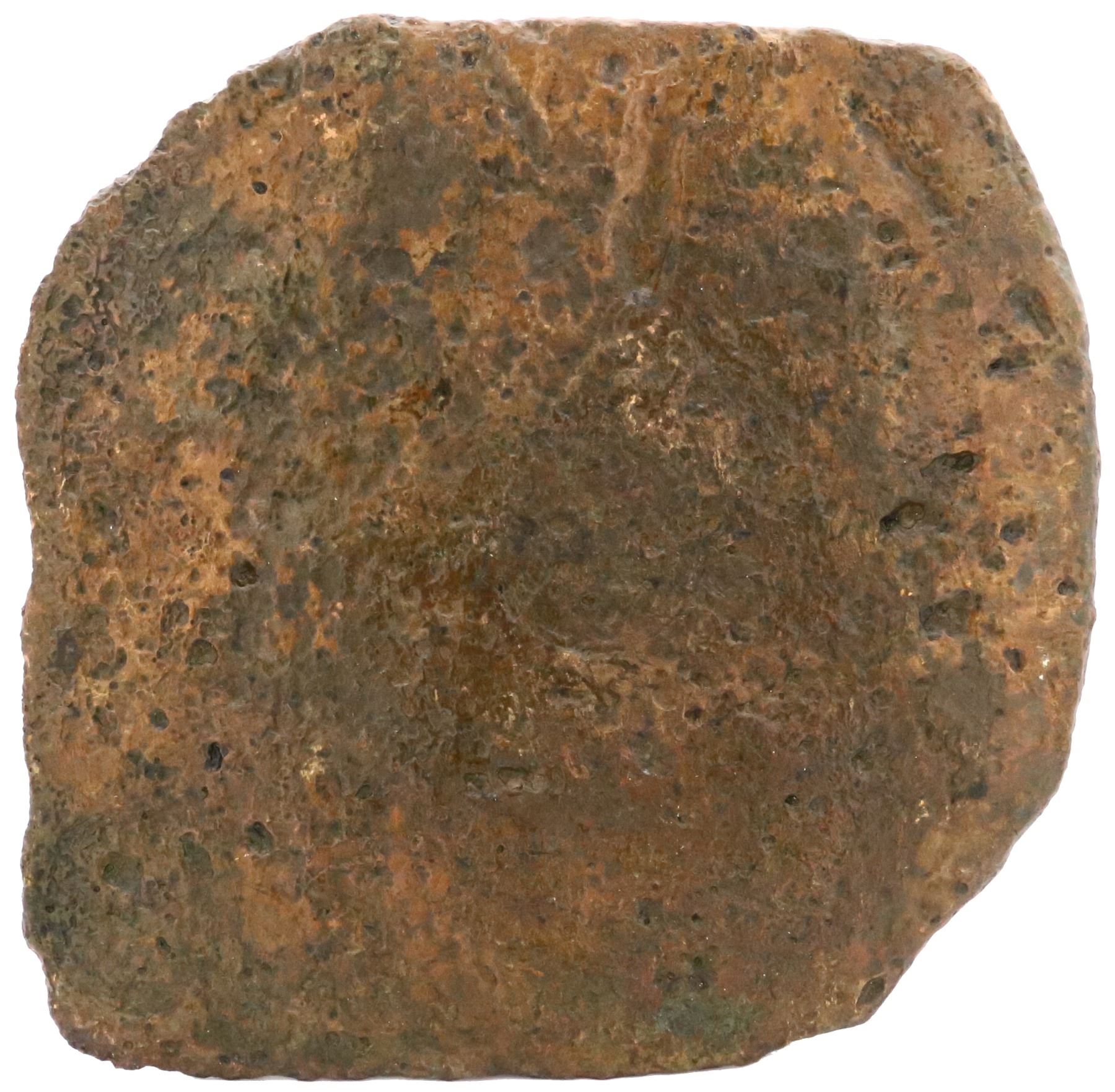 Sweden (Avesta mint), copper 4 daler "plate money," probably Fredrik I (1720-51), date not visible. KM-PM74. 1970 grams, 8-3/4" x 8-3/4". Corroded with rounded edges, two stamps faintly visible but one with clear denomination. With original (generic) certificate from the salvors. From: Nicobar, sunk in 1783 off South Africa