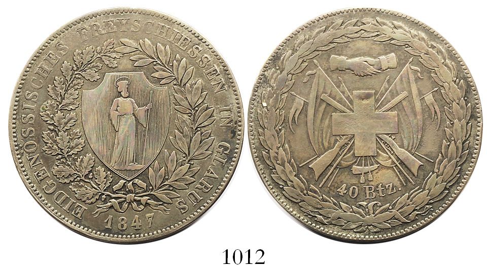 Switzerland, 40 batzen, 1847, Glarus  shooting taler,  rare.