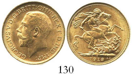 Sydney, Australia, sovereign, George V, 1913. KM-29; Sp-4003. 8.0 grams. Choice BU, just a few minor bagmarks.
