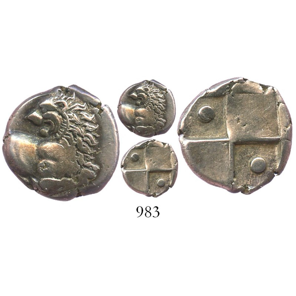 THRACE, Chersonesos. Ca. 350-300 BC. AR hemidrachm. McClean 4056. SNG Copenhagen 824-6. 2.4 grams. Forepart of lion right, head reverted / Quadripartite incuse square with alternating raised and sunken quarters, pellets in opposite sunken quarters. Lightly rainbow-toned AVF.