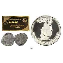 Promotional 375th anniversary presentation set consisting of one Potosi, Bolivia, cob 8 reales, Philip III, assayer Q, Grade 1, plus a 2-oz gold-plate