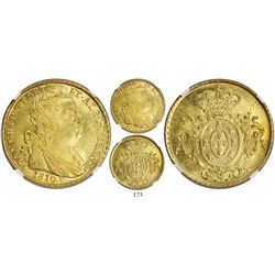 Brazil (Bahia mint), 4000 reis, Joao Prince Regent, 1806, encapsulated NGC MS 63, tied for finest known in NGC census. Russo-545; KM-235.1. Choice st