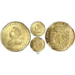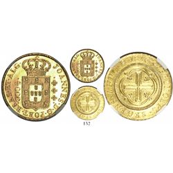 Brazil (Rio mint), 4000 reis, Joao VI, 1820, encapsulated NGC MS 63, tied for finest known in NGC census. Russo-584; KM-327.1. Deep yellow color and