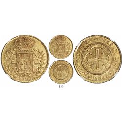 Brazil (Bahia mint), 4000 reis, Joao Prince Regent, 1808/6, encapsulated NGC MS 62, tied for second finest known in NGC census. Russo-unl. (cf. 547);