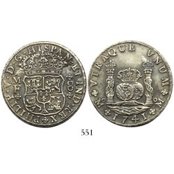 551 - Mexico City, Mexico, pillar 8 reales, Philip V, 1741MF with 4/3, rare.Sedwick & Associates, LLC