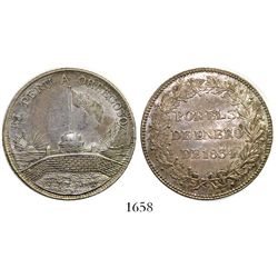 Callao, Peru, silver "6 reales"-sized medal, 1834, General Orbegoso, ex-Derman. Fonr-9191 17.93 grams. Obverse with seaside fort scene und...