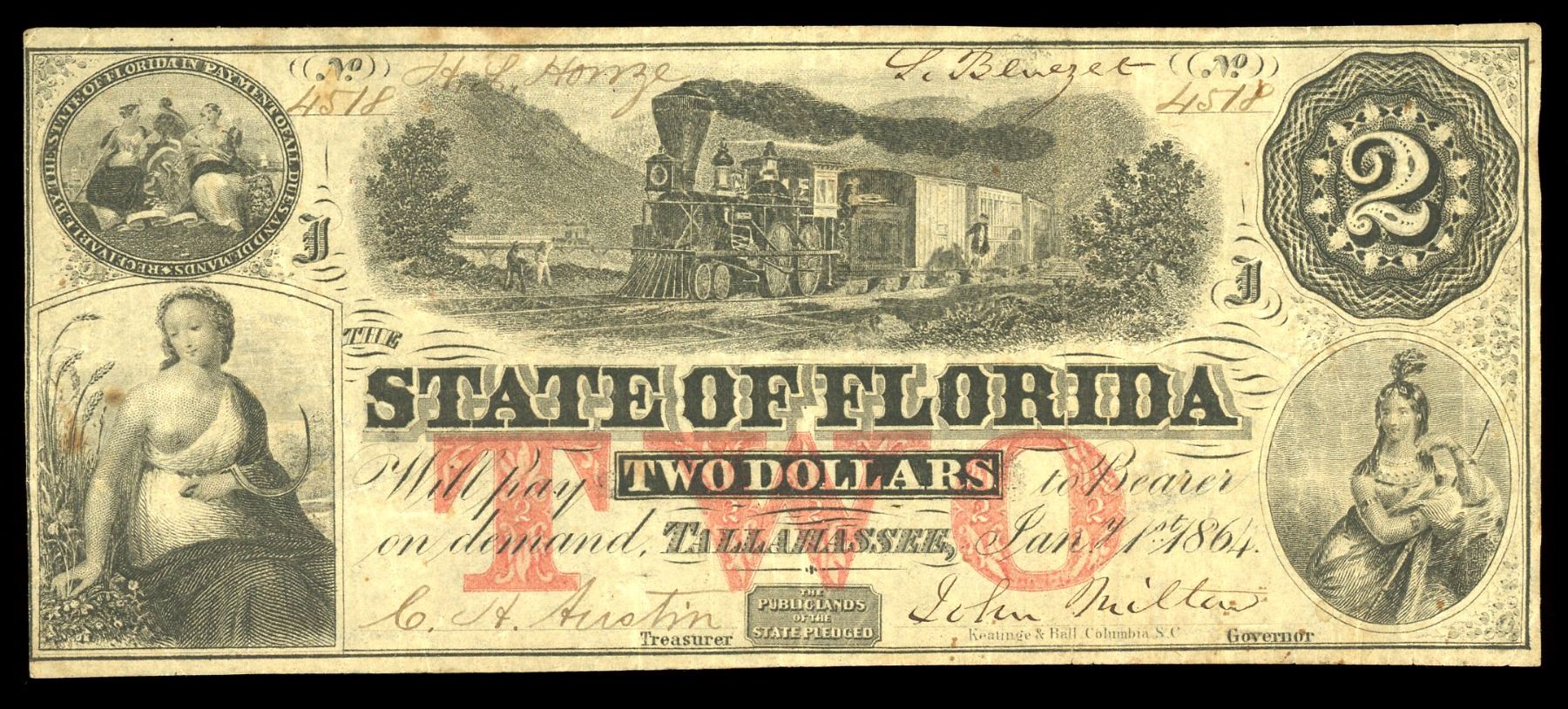 Tallahassee, Florida, $2, Jan. 1, 1864, serial 4518.