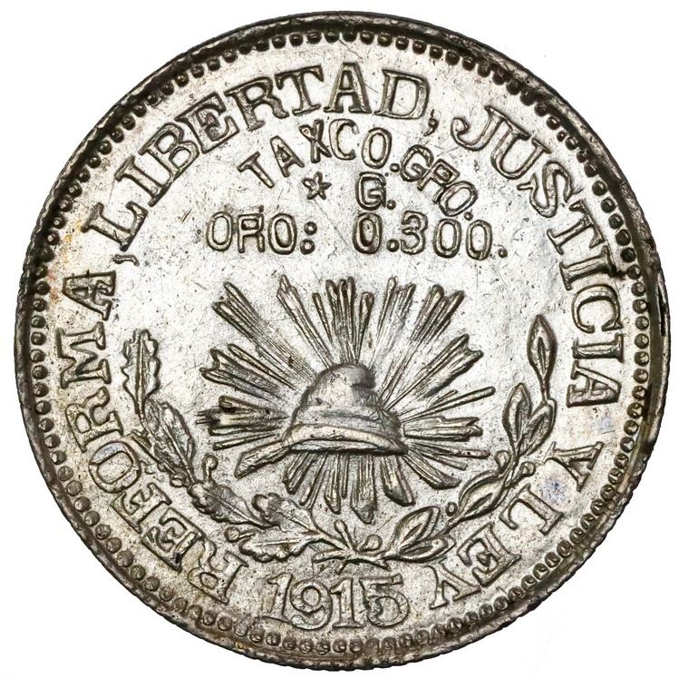 Taxco, Guerrero, Mexico, 1 peso, 1915, star before G and denomination, NGC AU 58, ex-Jones.