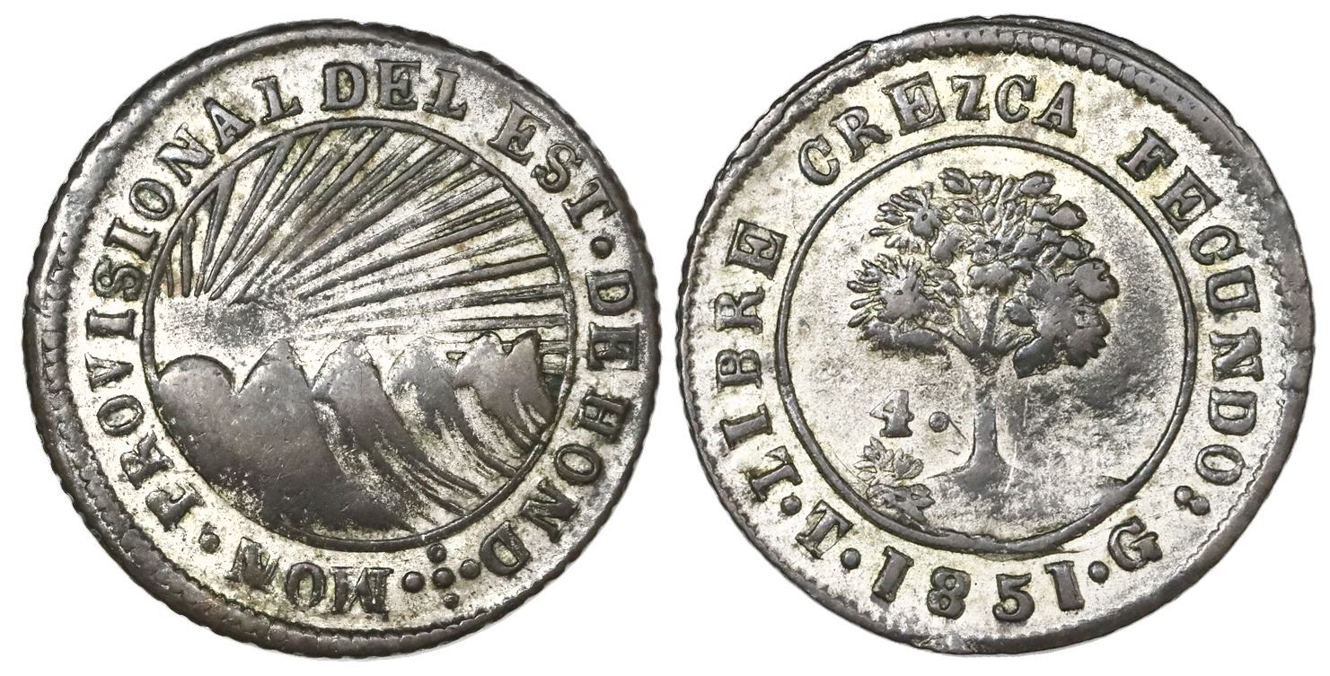 Tegucigalpa, Honduras, provisional (low-silver) 4 reales, 1851G, NGC VF 35, ex-O'Brien.