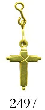 Tiny gold cross with two links. 0.7 gram, 7/8" long. Too small to be anything but an earring, high-grade gold and perfectly intact. From the Spanish 1733 Fleet, Florida Keys, pedigreed to the Marty Meylach collection.