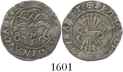 Toledo, Spain, 1/2 real, Ferdinand-Isabel, assayer M above mintmark T below yoke.