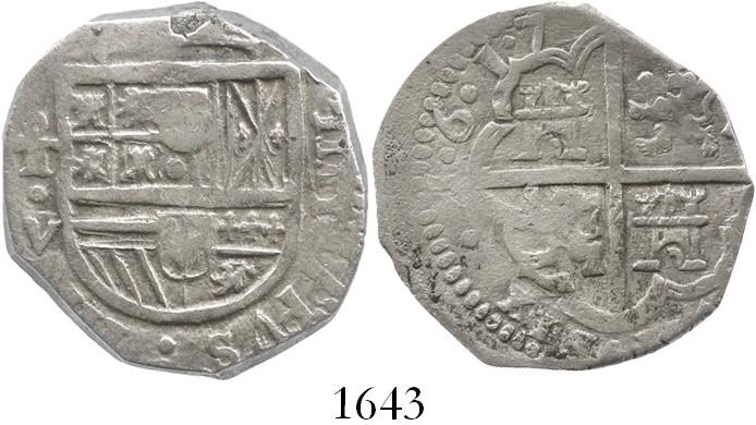 Toledo, Spain, cob 4 reales, 1617V, dots between digits of date.
