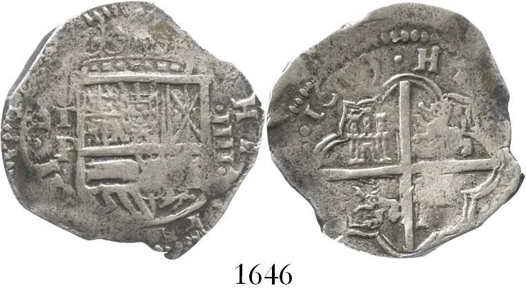 Toledo, Spain, cob 4 reales, 1619P. KM-36.3; CT-305. 13.5 grams. Broad flan with good full shield and cross, the former with bold oT-P to left and denomination IIII to right, the latter with full date in legend, Fine+ with contrasting toning.