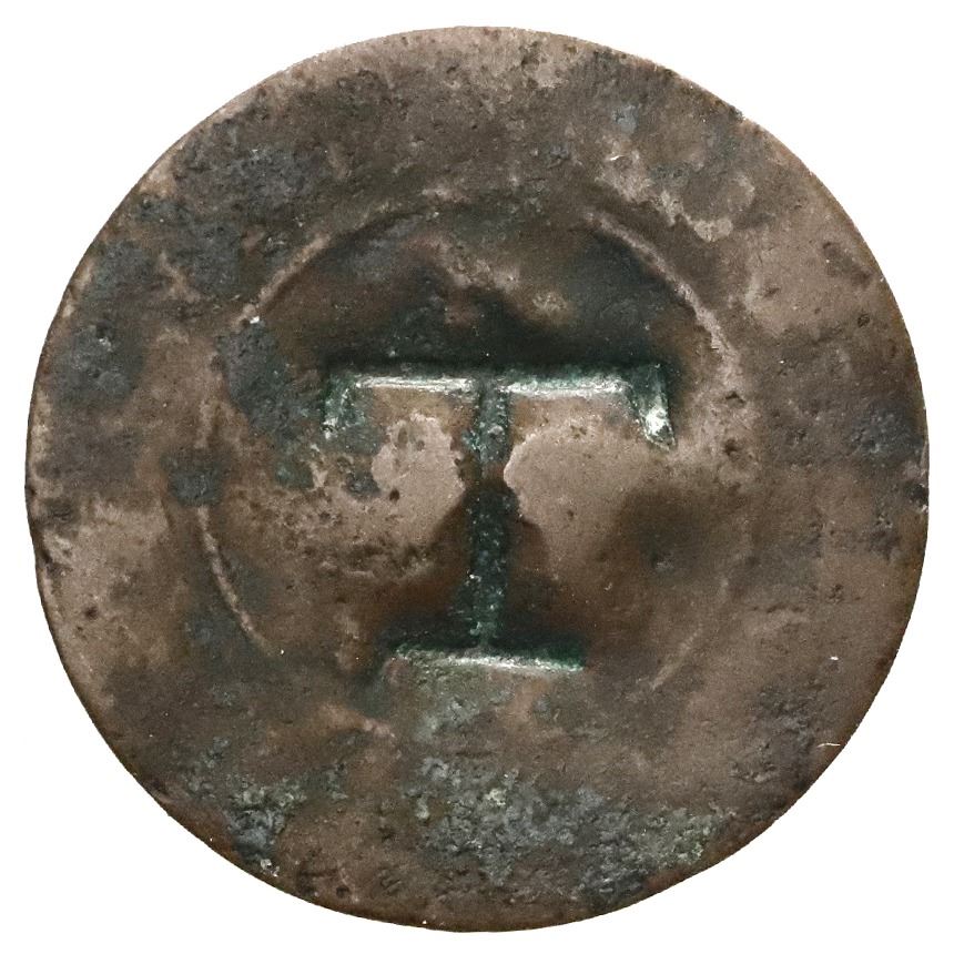 Tortola (British Virgin Islands), 1-1/2 pence "black dogg (1801)," countermark incuse T on a French Guiana (Cayenne) billon 2 sous of the late 1700s. Prid-7; KM-3. 1.41 grams. Bold and even VF countermark on a slick host coin with partial legends visible, some verdigris.