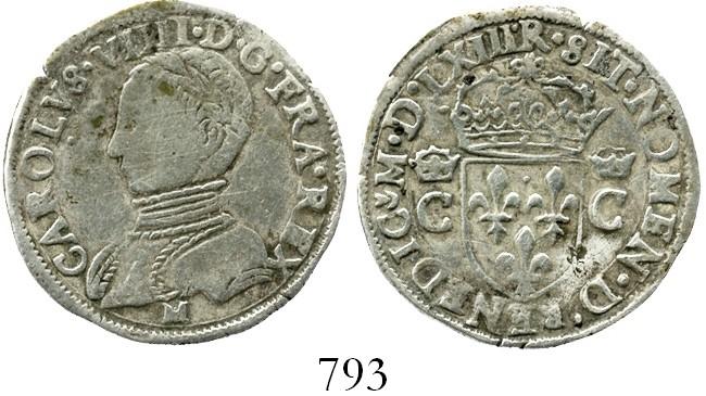 Toulouse, France, half testoon, Charles IX (1560-74), dated 1563 in Roman numerals, mintmark M below