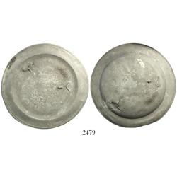 Large pewter plate. 976 grams, 12" in diameter. Fully intact except for two cracks in the bowl section, with 1-1/2" rim, no visible marki...