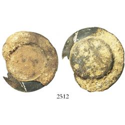 Lead textile seal (complete). 14 grams, 1-5/8" x 1". Full seal with arms on each side (one a big, sword-wielding lion), connector strips ...