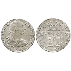 Mexico City, Mexico, bust 8 reales, Charles III, 1783FF. KM-106.2; CT-933. 24.4 grams. Typically silvery but with decent XF details, very light surfac