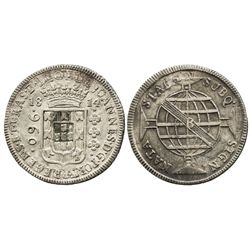Brazil (Bahia mint), 960 reis, 1815-B, encapsulated NGC MS 64, tied for finest known graded by NGC. KM-307.1. Choice luster and pinkish toning, parts