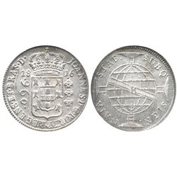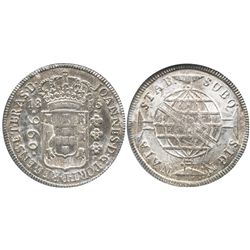 1318 - Brazil (Bahia mint), 960 reis, 1814-B, encapsulated NGC MS 64, tied for finest known graded by NGC.Sedwick & Associates, LLC