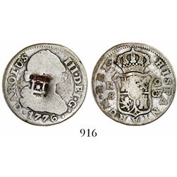 Cuba (Trinidad / Santiago / Principe), 2 reales, lattice countermark (1841) on a Seville, Spain, bust 2 reales, Charles III, 1776CF. KM-1.2. 5.26 gram