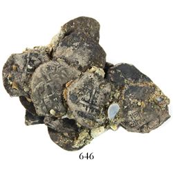 646 - Clump of about 20 Lima, Peru, and/or Potosi, Bolivia, cob 1R with encrustation (as found).Sedwick & Associates, LLC