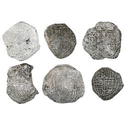 311 - Lot of six Potosi, Bolivia, cob 8 reales, Philip III, various assayers (where visible), Grade 3, witSedwick & Associates, LLC