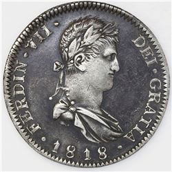 Durango, Mexico, bust 8 reales, Ferdinand VII, 1821CG. KM-111.2; CT-430. 26.91 grams. Scarce, richly toned XF+, part of edge crude (as made). Pedigree