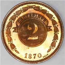 Paraguay (struck at the Heaton mint, England), copper 2 centesimos, 1870-SHAW, NGC MS 65 RB, ex-Heaton Mint Archives (as stated on label). KM-3. Uppe
