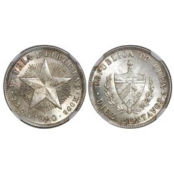 Cuba (struck at the Philadelphia mint), 10 centavos, 1920, NGC MS 65, ex-EMO Collection (stated on label). KM-A12. Scarcer date of the star-peso seri