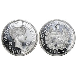 Cuba, proof 1 peso, 1965, plain edge, NGC PF 63 Cameo, ex-EMO Collection (stated on label). KM-XM5. One year type, struck by Cuban exiles in the US.