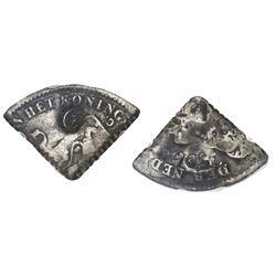 Curacao (Dutch administration), 1/4 gulden, script-C countermark (1838) on a 1/4 cut (toothed edges) of a Netherlands 1 gulden of Willem I, PCGS F12.