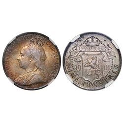 Cyprus, 9 piastres, 1901, Victoria, NGC MS 62. KM-6. One-year type-coin that is very tough to find in MS grades. Conservatively graded, gorgeous toni