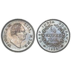 Calcutta, India (British), 1/4 rupee, William IV, 1835(C ), incuse F on bust truncation, nineteen berries in wreath, NGC MS 64. S&W-1.65 Type B/...