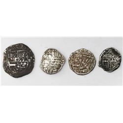 1690 - Lot of four Potosi, Bolivia, shield-type cob minors (two 2R, two 1R), Philip II-IV, assayers B, T anSedwick & Associates, LLC