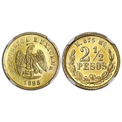 Mexico City, Mexico, gold 2-1/2 pesos, 1888M, NGC MS 63. ,KM-411.5. Lustrous fields with die-polish lines still present, traces of light toning, scar