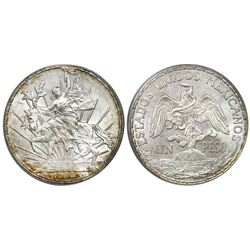 Mexico City, Mexico, 1 peso "caballito," 1913, PCGS MS64. KM-453. Nice luster and minimal bagmarks with rainbow toning at obverse rim, ne...