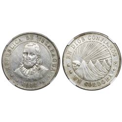1053 - Nicaragua (struck at the Heaton mint), 1 cordoba, 1912-H, NGC AU 53.Sedwick & Associates, LLC